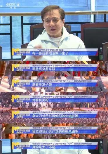 成龙赞叹八路军不易,他说,“那些兵穿着草鞋,拿着单发子弹,对着机关枪,拿大刀长矛对着他们的先进武器,我觉得我们共产党的那些八路军,真的是太了不起!”