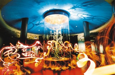 光绘是通过相机长时间曝光拍摄,在镜头前以灯光为画笔绘出图像的艺术。21世纪以来,这种新兴艺术形式在国际上颇受年轻人喜爱。王思博自2010年开始从事光绘艺术创作,致力于将中国文化元素融入这种充满科技感的前卫艺术中。